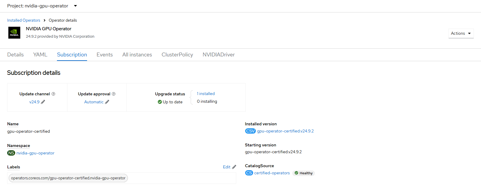 - Change to the nvidia-gpu-operator project:
