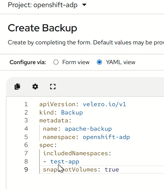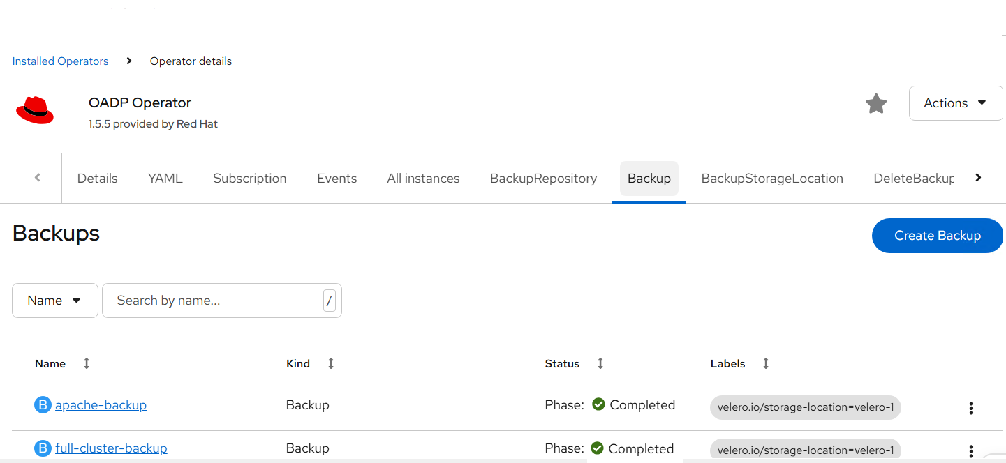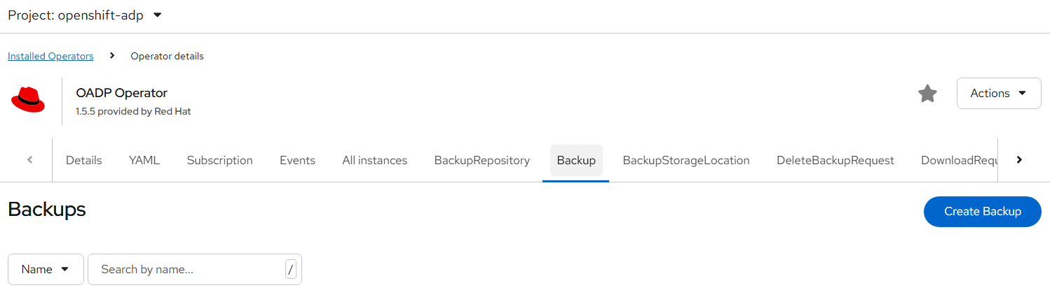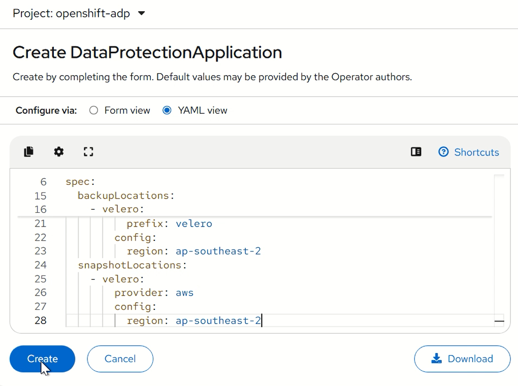 1, Go to DataProtectionApplication → Create Instance Example configuration: