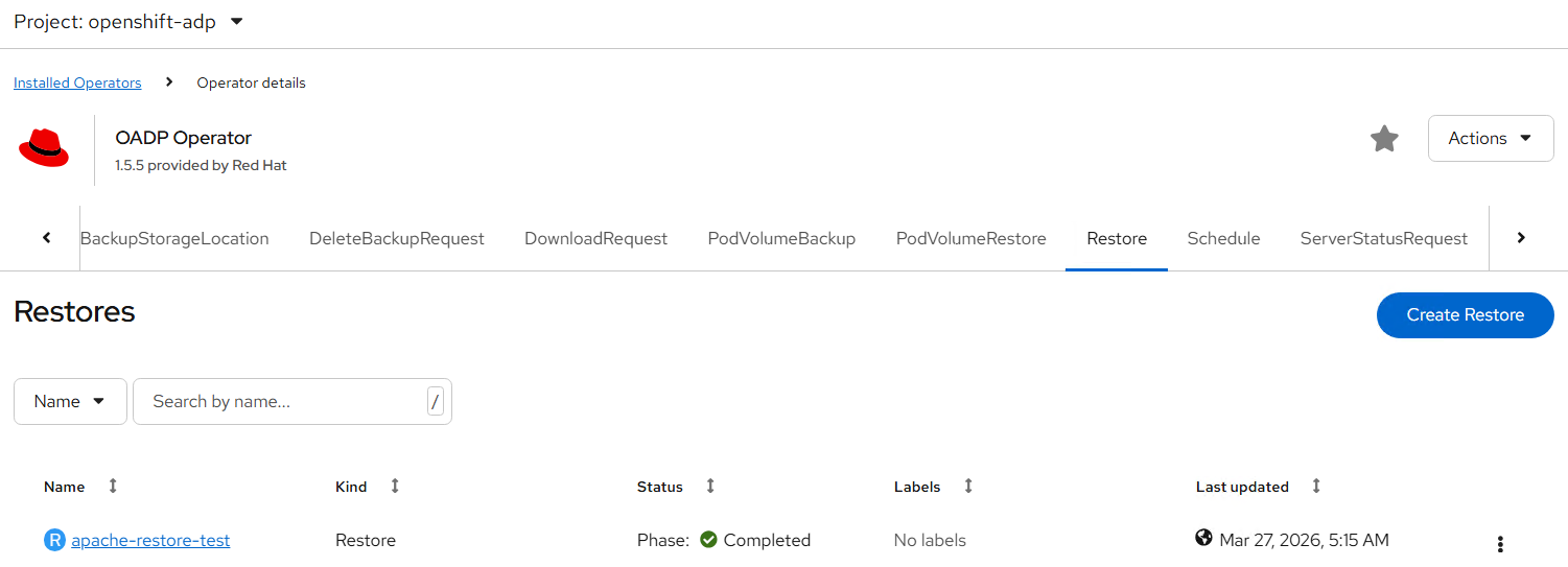 OpenShift API for Data Protection (OADP) is an OpenShift operator that enables backup and restore of applications and cluster resources. It is built on top of Velero, which provides the core functionality for taking backups, storing them in object storage, and restoring them when required.