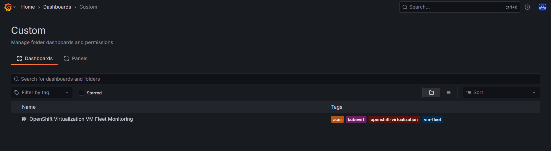 Go to Dashboards → ACM / OpenShift Virtualization