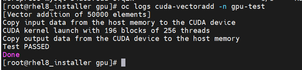 Running a sample GPU Application Run a simple CUDA VectorAdd sample, which adds two vectors together to ensure the GPUs have bootstrapped correctly. Run the following: