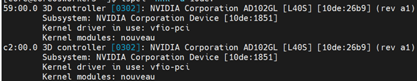 ssh to the worker node which is configured for vm-passthrough workload, and you can list the NVIDIA GPU devices with a command like the following example: