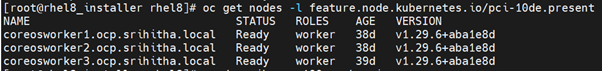 • $ export PRIVATE_REGISTRY=image-registry.openshift-image-registry.svc:5000/openshift VERSION=550.90.05 OS_TAG=rhcos4.21 CUDA_VERSION=12.4