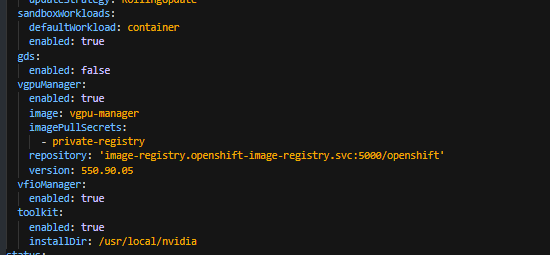 $ docker push image-registry.openshift-image-registry.svc:5000/openshift/vgpu-manager: 550.90.05- rhcos4.21