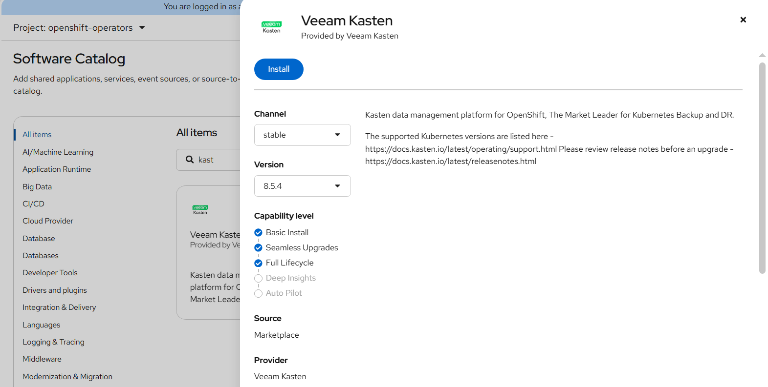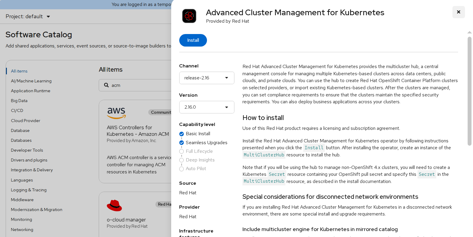 • In the OpenShift Container Platform web console, click Ecosystem → Software Catalog.