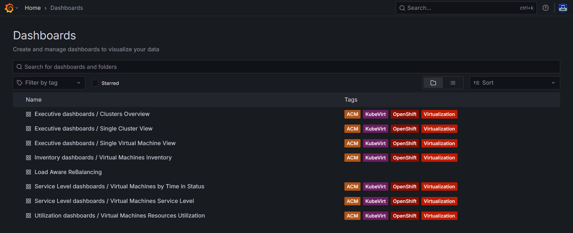 3. Go to Dashboards → ACM / OpenShift Virtualization