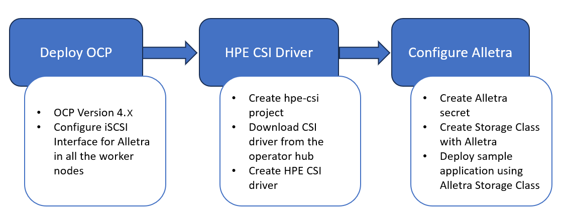 FIGURE 6. High-level flow diagram for HPE CSI Driver deployment on RHOCP 4.21